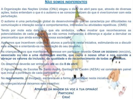 No AESA " Não somos indiferentes" ao autismo. Em breve surgirá um placard alusivo a esta perturbação com os contributos da comunidade escolar.